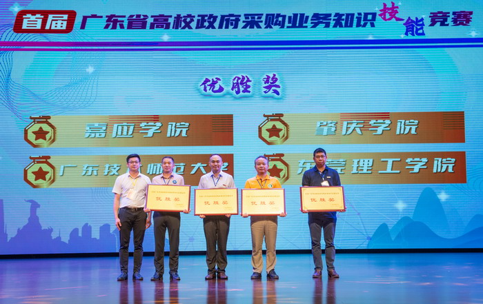 广东省教育厅举办的首届广东高校政府采购业务知识技能竞赛于9月24日晚在肇庆学院落下帷幕,由学校招标与采购管理中心钟惠球、方创胜、叶志强老师组成的我校代表队获得优胜奖,叶志强老师荣获最佳选手奖。