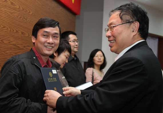 昨日下午,我校首次岗位聘任正高人员聘任仪式举行。 聘任仪式上,校党委书记周致纳、校长杨晓西向受聘的正高人员一一颁发聘书。 校领导吕琦元、邹晓平、戴炳源,校党委委员李培经、邢大立、杨敏林和机关各部处、院系主要负责人参加了聘任仪式。76名教师受聘正高岗位 据人事处介绍,我校首次岗位设置和人员聘用工作进入尾声。 在本轮岗位聘任中,按照公平公正公开的原则,经过个人申报和师资建设指导委员会评议、票决、公示等竞聘程序,并经校岗位设置和人员聘用工作领导小组批准,这次共有76名教师受聘正高岗位。周致纳:争做德技双馨的教师 在聘任仪式上,周致纳作了讲话。他充分肯定了岗位聘任工作,并向受聘为正高岗位的教师表示祝贺。 在讲话中,周致纳对各位正高人员长期以来支持帮助学校的发展表示感谢。他说,莞工所有的进步和成果,与各位正高人员的共同努力是分不开的。 同时,周致纳对受聘的各位正高人员提了要求。他要求,各位受聘的正高人员,要力争做到德技双馨,做一名高德高技的教师。