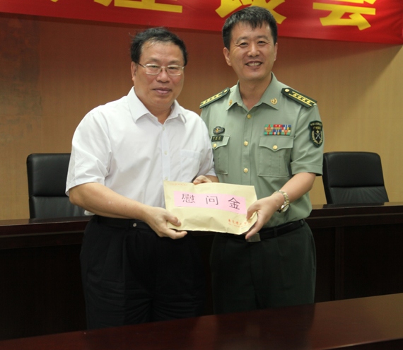 杨晓西校长代表学校向东莞军分区赠送慰问金