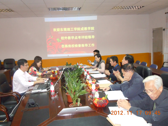 11月13日至21日,成教学院对12个校外教学点进行考评。考评专家分成两个组:第一组由考评专家小组组长、成教学院院长段雄春研究员带队,先后考评了常平、东坑、茶山、石龙、塘厦、樟木头等六个校外教学点;第二组由考评专家小组组长、成教学院党总支书记程克江副教授带队,先后考评了虎门、厚街、长安、大岭山、麻涌、望牛敦等六个校外教学点。专家组成员认真听取了各教学点负责人的自评汇报,仔细查阅了有关档案材料,实地考察了教学点教学设施及办学条件,召开了相关工作人员座谈交流会。