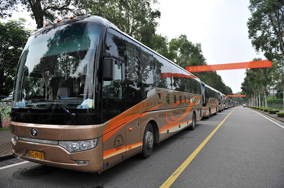 接送新生的大巴整齐地排列着