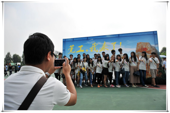 新生们用手机记录下这难忘的时刻