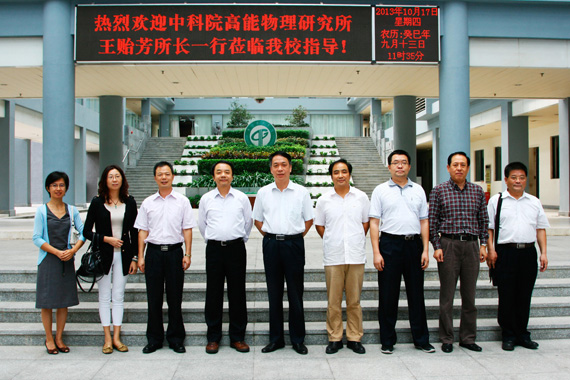 10月17日,中国科学院高能物理研究所所长王贻芳研究员一行4人到访我校。校长李琳教授、副校长李忠红教授及相关部门负责人接待了客人。