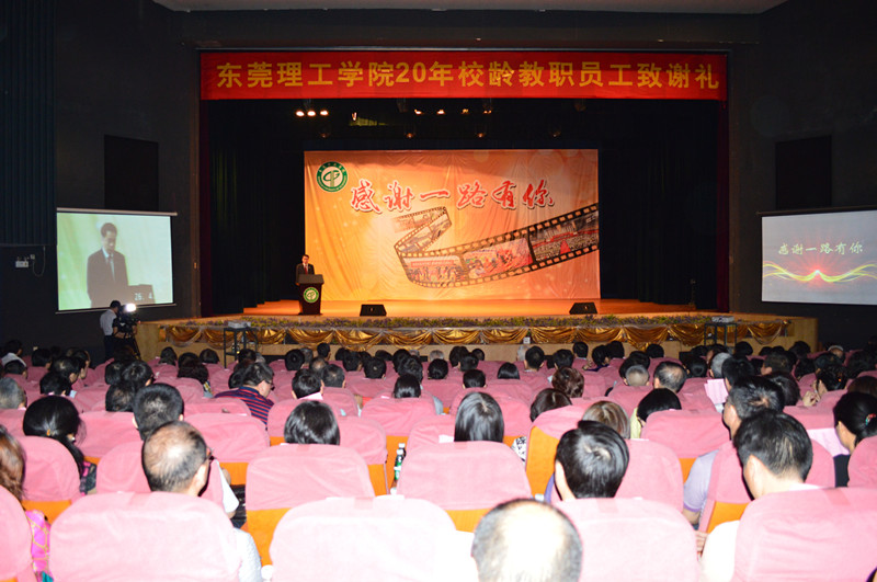 致谢礼上,校长李琳代表学校向校龄20年的教职员工表达了敬意与谢意。他希望师生们永远记住为学校建设和发展勤勤恳恳、任劳任怨工作的任何莞工人,并以前22年努力工作的成果为基础,继续在东莞市委市政府的领导下,瞄准东莞乃至广东经济建设和社会发展的重大需求,加快实现建设高水平应用型地方大学的目标。李琳祝愿在学校工作20年且已经离开工作岗位的教职员工保重身体,开心生活,希望他们继续关心、关注学校的建设和发展。