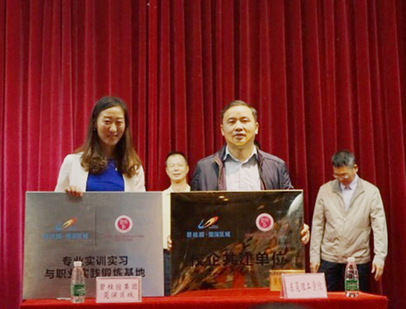 11月2日,莞城校区学术报告内举行了碧桂园集团莞深区域与东莞理工学院法社学院校企共建暨设立奖学金仪式。碧桂园集团莞深区域常务副总裁张剑、物业公司总经理代涛、总裁助理王丽莎等企方代表,我校副校长李忠红、发展联络办主任崔学海、法社学院党政领导等校方代表出席活动。