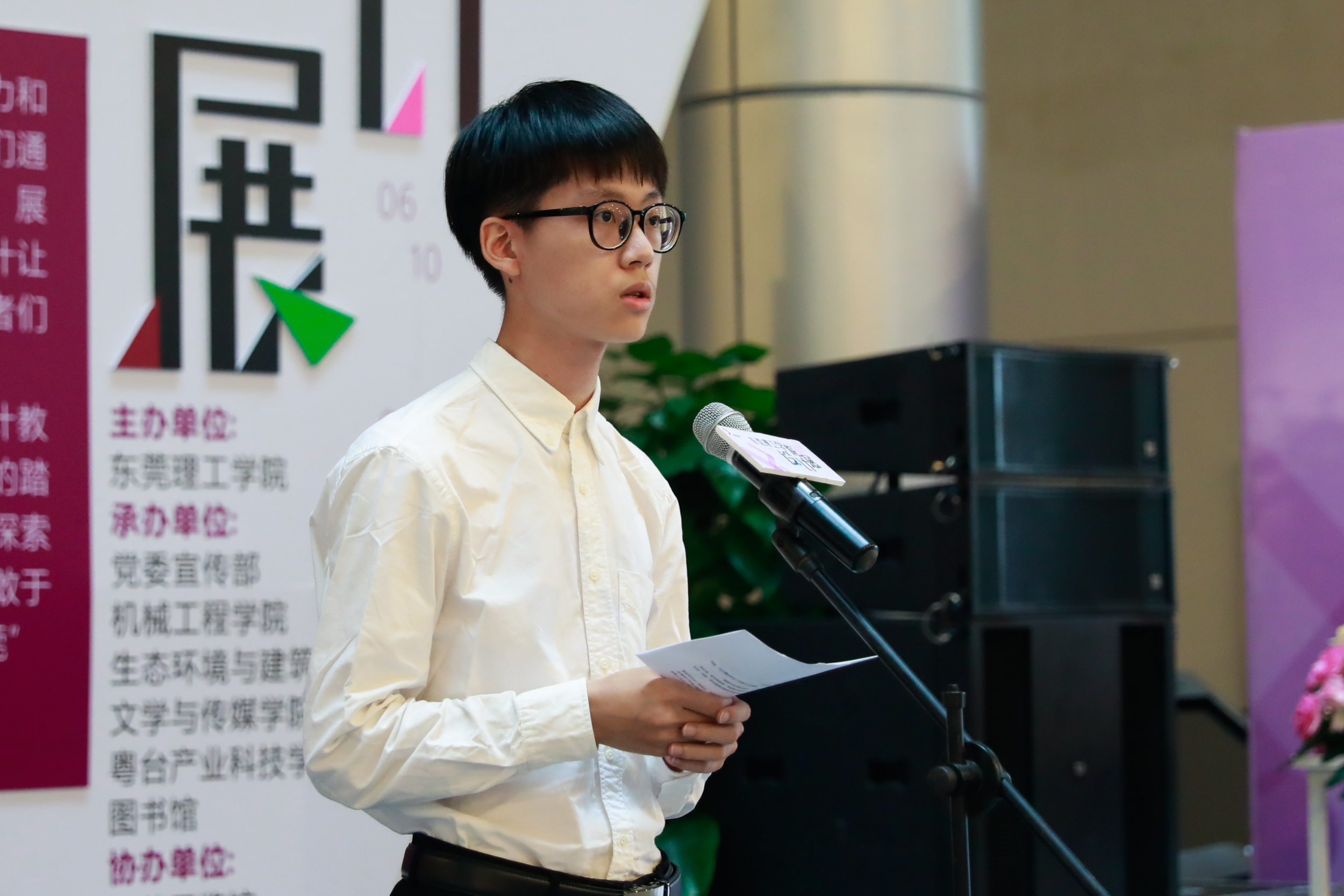 来自粤台产业科技学院的学生代表洪展鸿同学是展品“易提水桶”创作团队的一员,他认为设计展是一个跨领域交流学习,培养优良学习氛围的平台,四个专业及校内其他人士可以共同探讨提高。