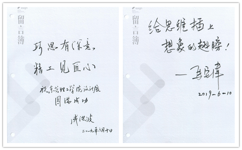 参观结束后,书记校长为本次设计展留下感言,从字里行间都能看出学校对本次设计展的重视与期待,对于同学们的作品都报以很高的评价。