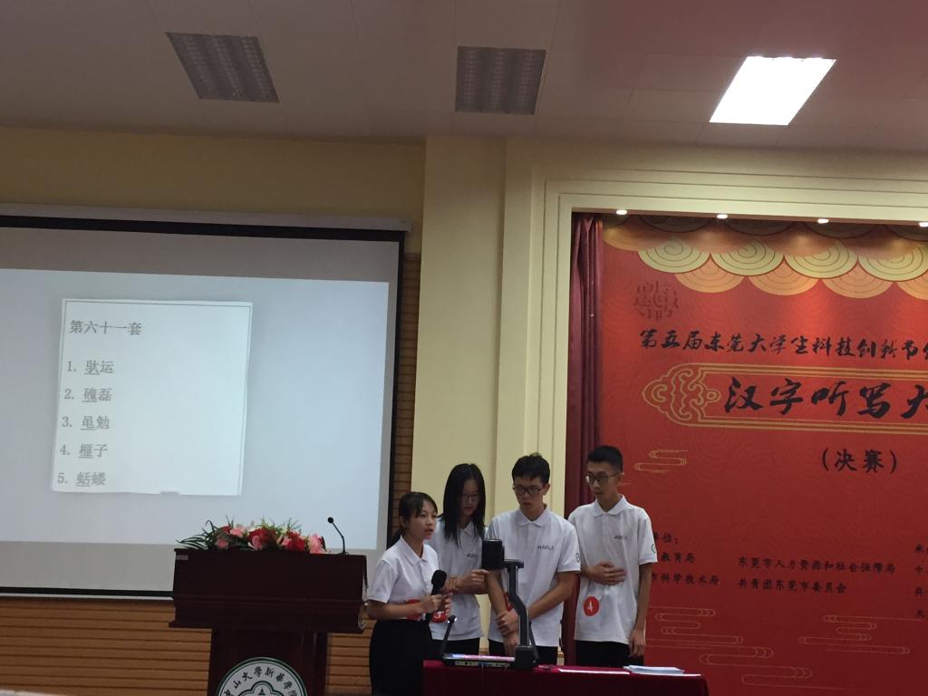 本次汉字听写大赛以“笔尖出汉字,文化彰自信”为主题,参加比赛的是来自东莞市多所高校的16支队伍。比赛一共有3轮,第一轮为读音考察,第二轮为正字正音考察,第三轮为猜成语。