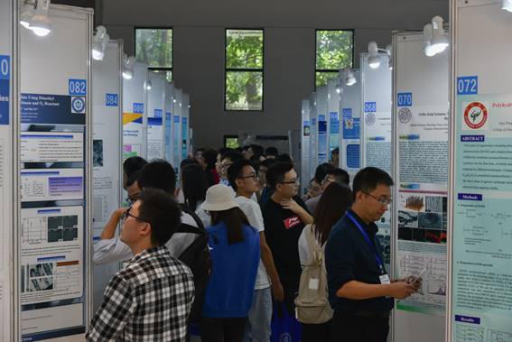 在墙报交流与评审上,来自中山大学、清华大学深圳国际研究生院、华南理工大学、广东新材料研究所、广东工业大学、东莞理工学院等十几所高校、研究所的130余份墙报参与评比。墙报评出一等奖两名,二等奖六名,三等奖十名。其中我校教师祝闻获得一等奖,易爱华获得三等奖。