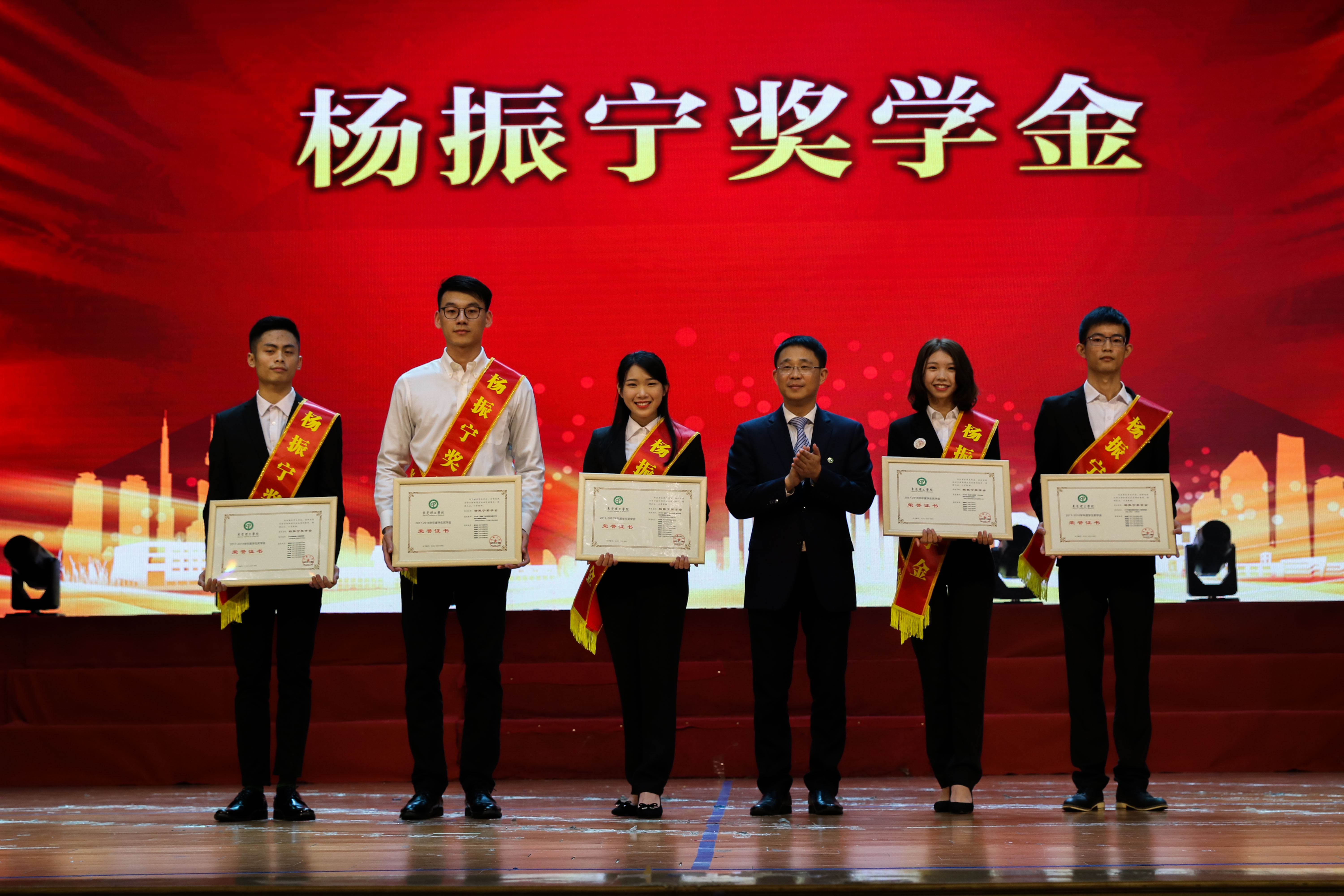 本次颁奖典礼共表彰了36个先进班集体、23名优秀大学生标兵、797名优秀大学生、790名优秀学生干部、5056名个人奖学金;其中授予5个项目团队我校最高荣誉——杨振宁奖学金。