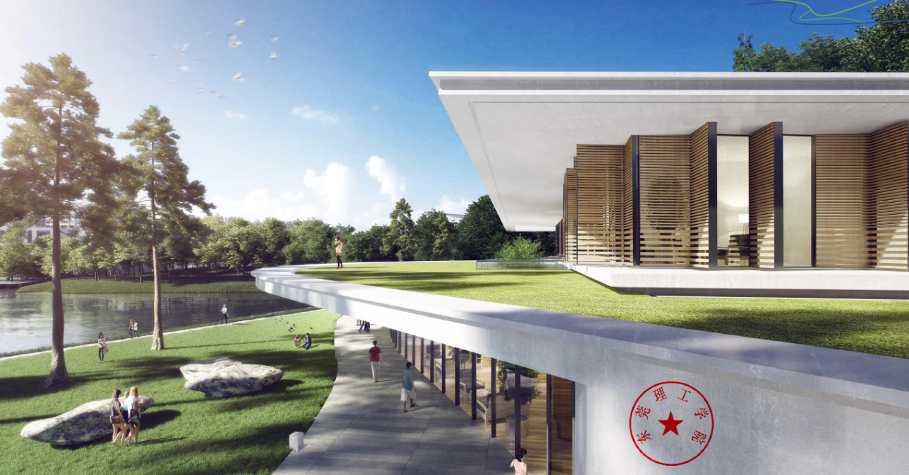 临湖层和高台层分别为“学知园”和“心知阁”。之所以用“学知园”和“心知阁”来命名,是因为“学知”源自东莞理工校训而不足”。“学知园”以灵动曲线设计嵌入场地,是组织传授交流活动、发布展览的场所。“心知”源自杨振宁先生喜爱的杜甫名句“文章千古事,得失寸心知”,心知阁则以宁静方形的形状置于高台,用于会见客人、憩息以及居住的场所。一曲一直的形式组织与一动一静的功能分区相匹配。