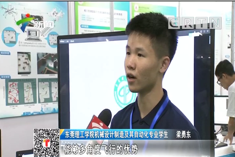 在现场,我校项目获得高度关注,不少参观者到展位前咨询。在本次决赛中获得特等奖的应用于复杂地形的无人机和无人车协作导航系统团队负责人之一梁勇东同学接受了广东广播电视台的采访。面对镜头,他将设计思路、研究成果娓娓道来,详细地介绍了项目基本情况。吕琦元也对该项目给予高度肯定,希望他们可以再接再厉,勇攀高峰。