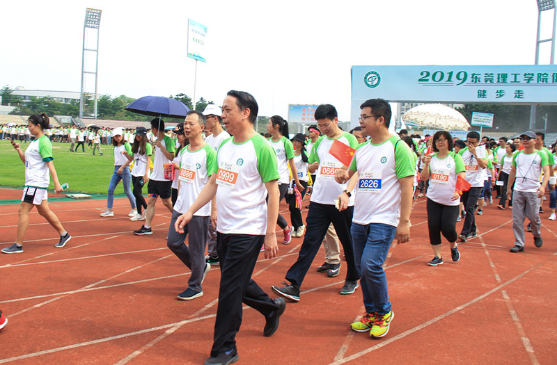 4月28日,面对几天来难得的好天气,4800多名莞工师生校友齐聚操场,以健步走的方式祝福新中国成立70周年、纪念五四运动100周年、庆祝莞工27岁生日。本次活动是我校今年开展的“我的祖国”爱国主义主题教育活动之一。活动分彩色跑、健步走、大行进三部分。其中“健步走”主要是沿松山湖校区校园、松山湖中学绿道环校走,全程约6.2公里;“彩色跑”的路线为松山湖校区的校内道路,全程约3.3公里;“大行进”主要围绕莞城校区校园行走,并在指定点签到打卡。