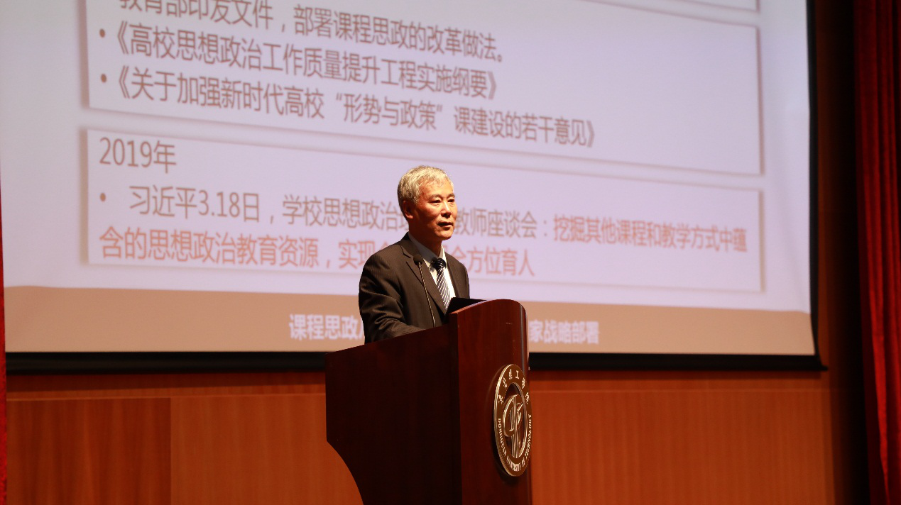 来自山东大学的李赛强教授以《课程思政教学设计与实施》为题作了报告。李赛强从“课程思政”建设的意义、课程设计原理、“课程思政”教学设计策略、“课程思政”建设四个方面展开讲座内容,从宏观层面剖析了当前学科专业课教育过程中普遍存在重教书轻育人的状况,同时为我校教师在今后课堂上育人方案的优化提出了宝贵意见,强调课程思政既要有理论的高度,又要有实践的深度。
