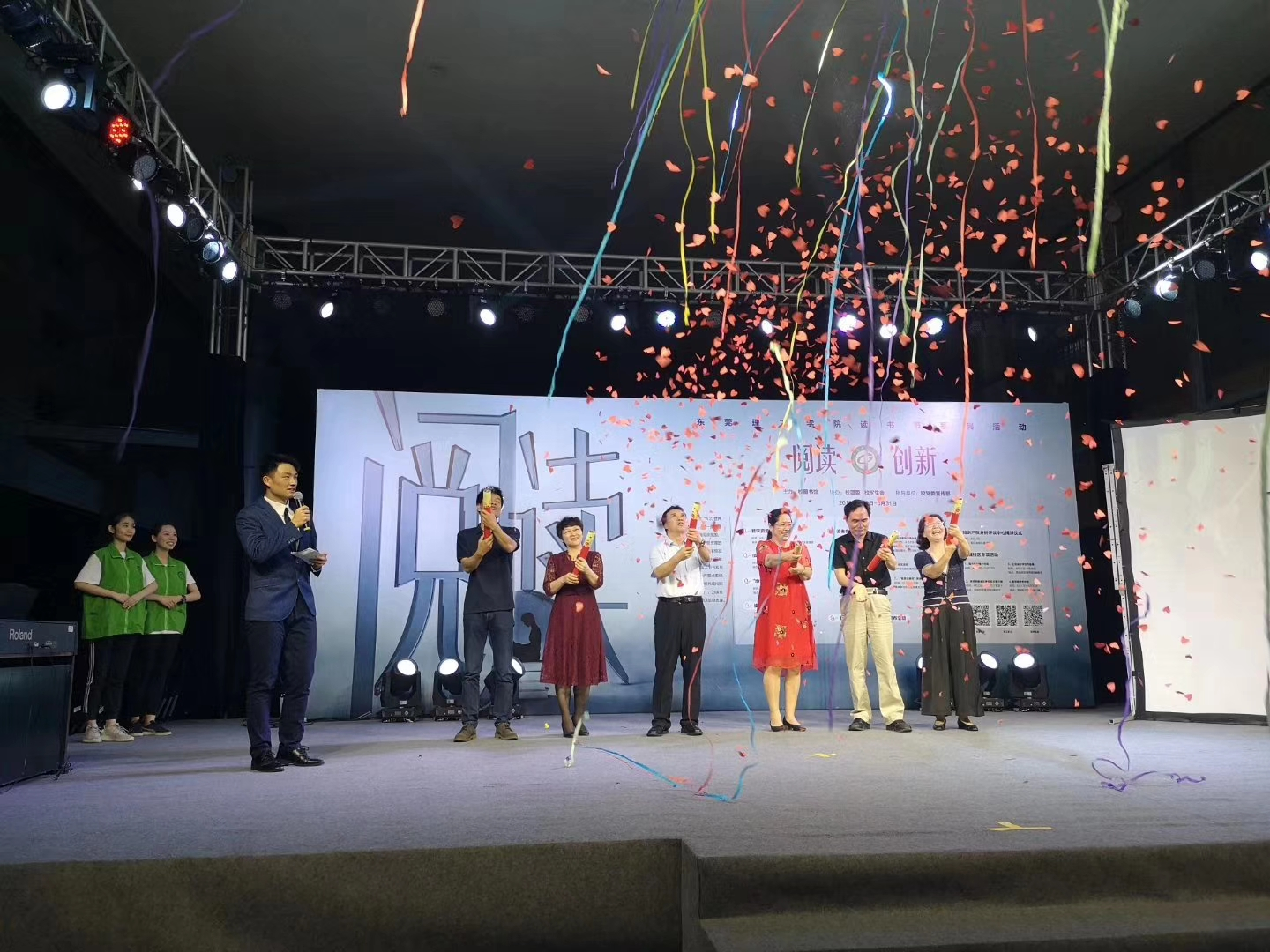 4月23日晚,我校2019年读书节开幕式暨优秀读者颁奖晚会在松山湖校区图书馆举行。副校长马宏伟、图书馆馆长严前海、法社学院院长郑玉敏等出席开幕式并为2019年读书节揭幕。
