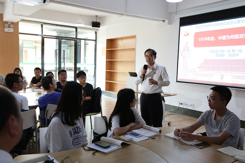 梁维东一行来到学生中心,首先旁听了主题为“邓小平理论的形成及其当代价值”的思政课教学,并与师生交流。“有了正确的方向,事业才能成功。”梁维东拿起话筒,结合亲身经历,分享了自己对改革开放40年辉煌历程的理解,勉励大家要重视提升思想道德素质,上好思政课,树立正确的世界观、人生观和价值观,不断提升思想境界,努力增强本领,为中华民族伟大复兴贡献力量。