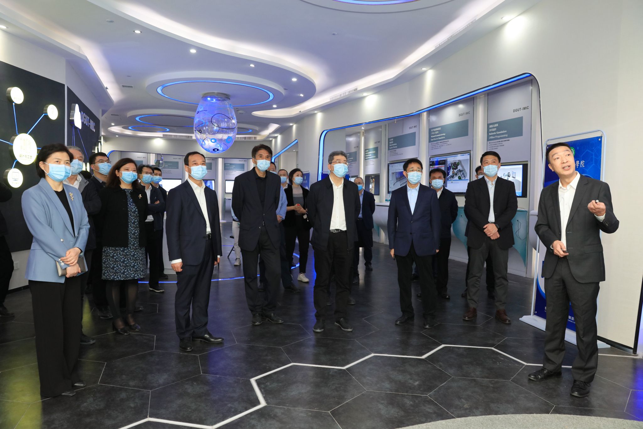 吴岩首先来到东莞理工科技创新研究院,听取成洪波关于新型高水平理工科大学建设进展情况的汇报。近年来,东莞理工学院以习近平新时代中国特色社会主义思想为指导,落实立德树人根本任务,加强党的全面领导和党的建设,坚持“需求导向+使命驱动”“校企合作+产教融合”“学科引领+有组织科研”,全面提高关键领域急需人才培养能力,切实增强服务高水平科技自立自强实效,全力推进新型高水平理工科大学示范校建设,开展了一系列新的探索,取得了一系列新的进展。吴岩指出,东莞理工学院要保持良好发展态势,继续把准办学方向、抓实工作措施,深入探索以国家战略和区域产业需求为导向的新型高水平理工科大学建设经验。