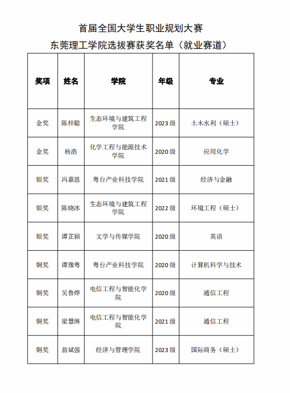 首届全国大学生职业规划大赛东莞理工学院选拔赛决赛获奖名单(公示)