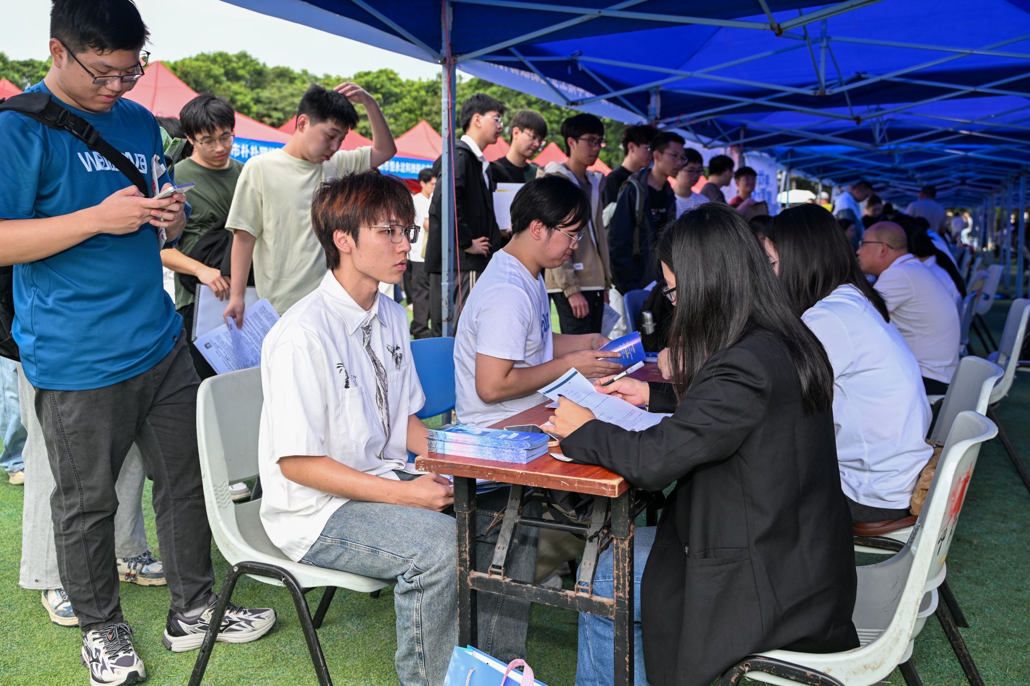 10月25日上午,由广东省教育厅主办、东莞理工学院承办的“就在南粤”广东省2026届普通高校毕业生系列供需对接活动(东莞地区专场)(以下简称为“秋季招聘会”)在松山湖校区假草田径场举行。同期,还举办了职业生涯体验日,现场设置“生涯与就业服务功能专区”“校企合作交流区”等,为用人单位和求职学子打造全方位护航的交流择业平台。