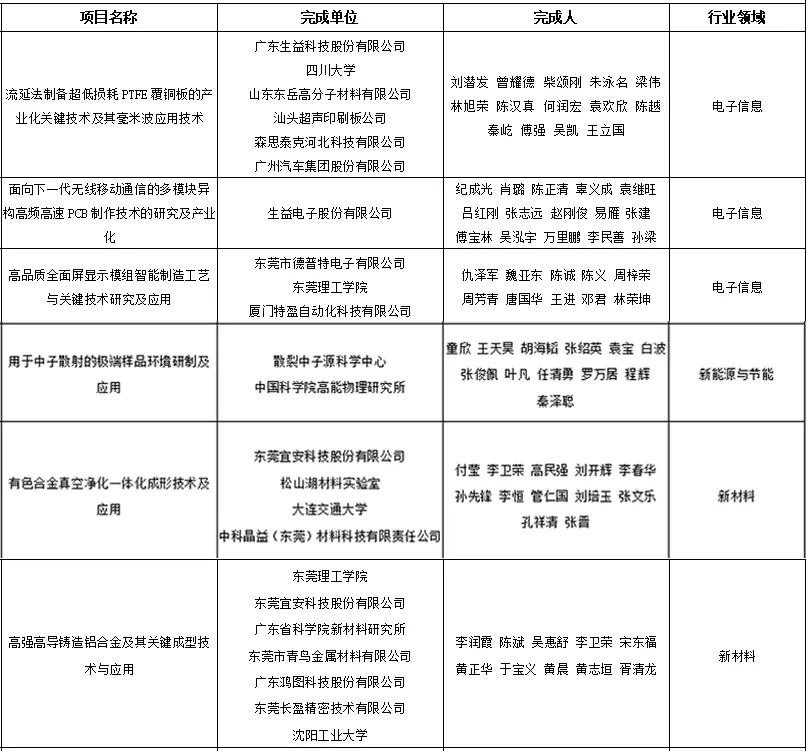 其中,创新东莞技术发明奖获得者为生益电子股份有限公司的“一种深微孔制作方法及PCB”,属于电子信息行业。值得一提的是,东莞理工学院牵头、参与了4个项目。