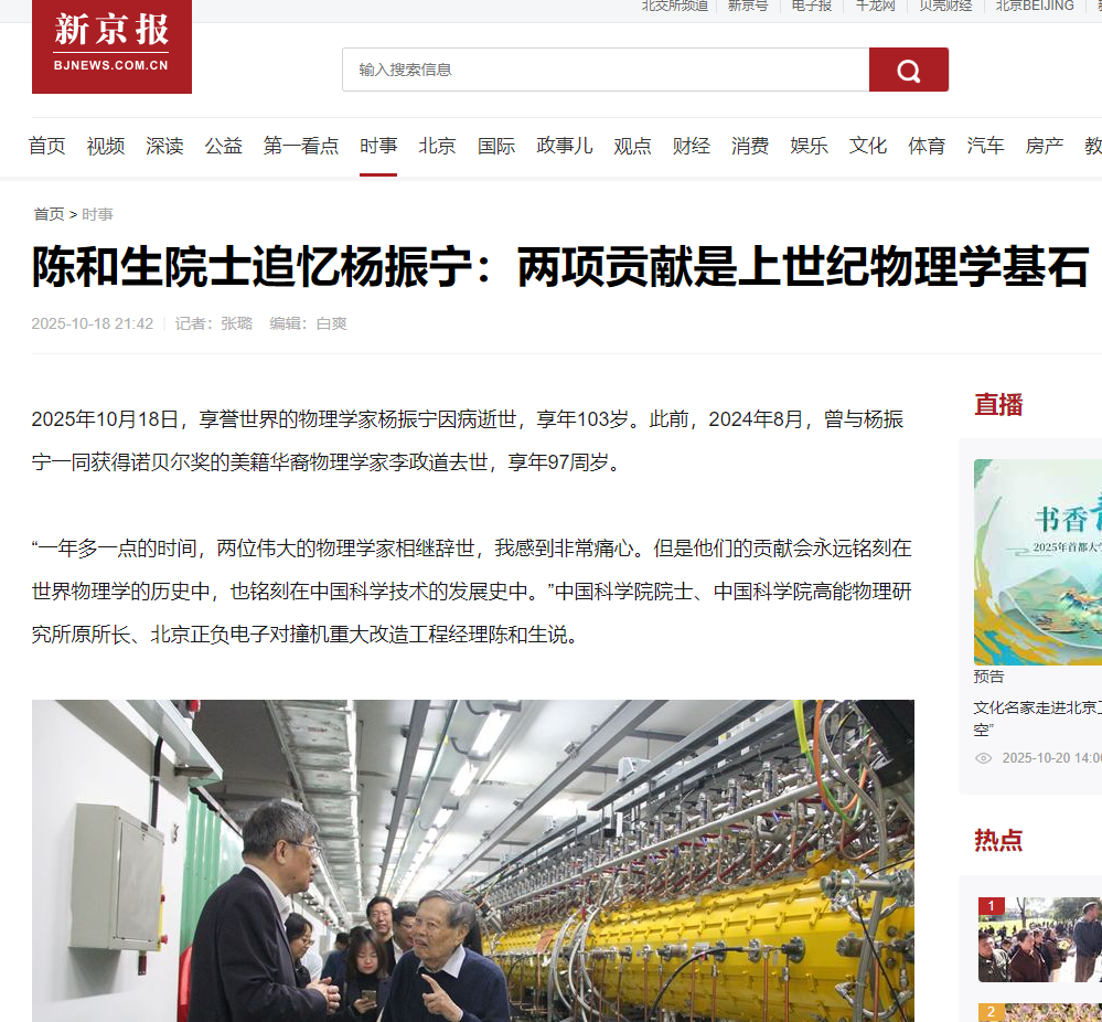 “一年多一点的时间,两位伟大的物理学家相继辞世,我感到非常痛心。但是他们的贡献会永远铭刻在世界物理学的历史中,也铭刻在中国科学技术的发展史中。”中国科学院院士、中国科学院高能物理研究所原所长、北京正负电子对撞机重大改造工程经理陈和生说。
