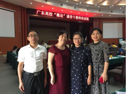 中央马克思主义理论研究与建设工程《毛泽东思想和中国特色社会主义理论体系概论》课程组首席专家、中国人民大学秦宣教授、东北大学马克思主义学院院长田鹏颖教授、北京大学马克思主义学院副院长程美东教授、华南师范大学马克思主义学院院长陈金龙教授分别作了报告。来自全省所有高校的《毛泽东思想和中国特色社会主义理论体系概论》课的骨干教师参加了本次培训。东莞理工学院马克思主义学院李仕波、孙艳萍、张萍、蒋青青四位老师参加了本次培训。