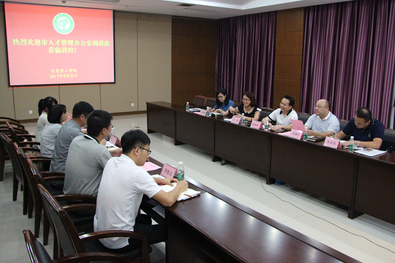 9月25日,东莞市人才管理办公室到我校,对2015-2017届东莞户籍毕业生就业、创业情况开展调研。调研组由市人才办主任陈柏林、副主任吴德阳等人员组成。
