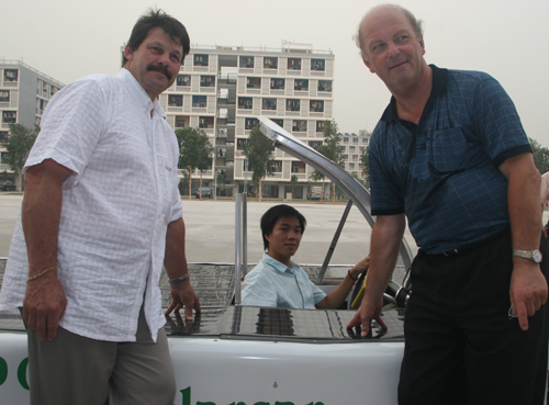 评审专家对我院学生设计制造的太阳能汽车很感兴趣