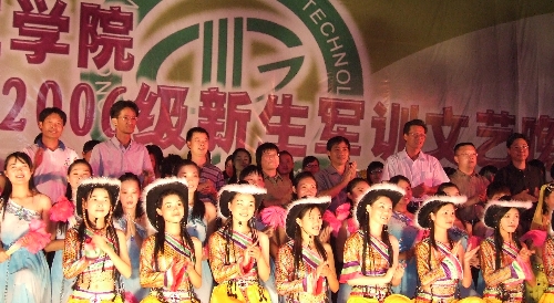 9月27日晚上,东莞理工学院2006级新生军训文艺晚会隆重举行。出席晚会的有院党委副书记王江水,党委副书记、纪委书记黄碧莲,副院长、军训领导小组组长戴炳源以及军训团的所有成员和各系辅导员。