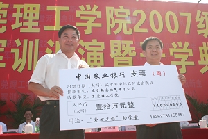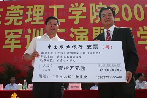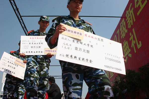 随后举行开学典礼。开学典礼上学院领导向吴楚怀等7名优秀新生各颁发了1万元的奖学金并举行了“爱心工程”捐款仪式。东莞长安国际酒店和东莞新奥燃气有限公司分别向学院捐助了10万元的善款资助20名家庭经济困难的新同学。新奥燃气副总经理陈仲新,东莞长安国际酒店董事、副总经理孙泽权分别与学院党委书记周致纳进行了支票交接并颁发捐赠证书。周致纳在开学典礼上致辞,他勉励新生们要志存高远,脚踏实地;注重方法,知行统一;珍惜友谊,共建和谐;独立自强,全面发展。