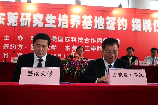 18日上午,暨南大学与我院在“东莞科技合作周”上签订协议,双方将联合开展研究生培养工作。这是继2005年我院与华南理工大学与开展联合培养研究生工作以来的、与我院合作开展研究生联合培养的第二所“211工程”重点综合性大学。