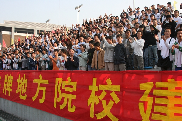 当学院党委书记周致纳宣布东莞理工学院2007年运动会正式开始时,顿时礼炮绽放,全场沸腾,掌声、欢呼声、呐喊声在整个会场上空回荡。