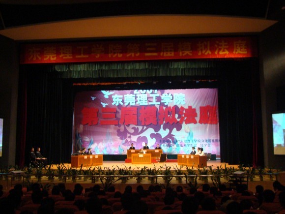 为提高学生的法律意识,加强学生法律观念,由07东莞理工学院校园文化巡礼组委会主办,东莞理工学院政法系承办,政法系学生会、大学生法学会协办的东莞理工学院第三届模拟法庭于11月4日晚在大礼堂隆重开庭。