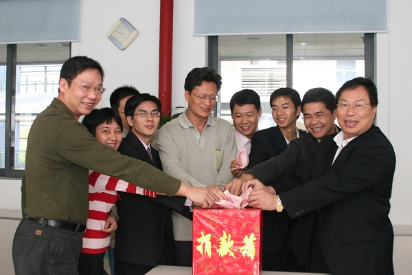 学院领导与广大教职员工踊跃捐款。图为院长杨晓西、副院长戴炳源与学院办公室工作人员一起参加活动,为需要帮助的困难群体捐款