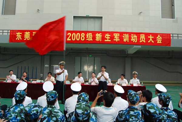 大会在雄壮的国歌声中拉开序幕。会上,王江水向军训团授旗。戴炳源、徐仕伟分别作了动员讲话。他们希望同学们能够把军训当作是对自己的考验和历练,充分发扬自强不息的精神,以积极饱满的精神风貌迎接军训,让自己在军训中升华品质、锤炼作风、提高技能,为大学的学习、生活打下坚实的基础。彭晓波宣读了《东莞理工学院2008级新生军事训练实施计划》,对军训相关工作和安排作了详细说明。