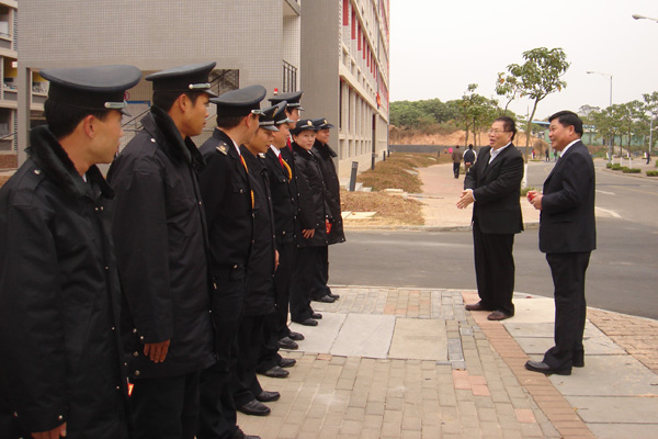 2009年1月26日农历正月初一,在新春佳节之际,学校党委书记周致纳,党委副书记、校长杨晓西,党委委员、学校办公室主任李忠红等一行亲切慰问了在学校坚守工作岗位的员工、后勤集团的员工和春节留住学校的勤工俭学学生,勉励他们在新的一年里再接再厉、更创佳绩。