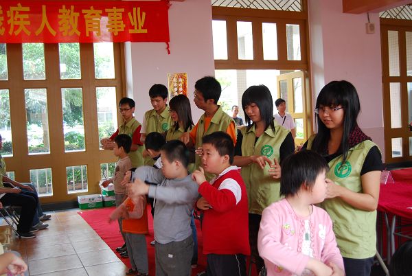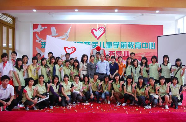 揭牌仪式上,团市委副书记李纲为志愿者代表授旗,正式成立残疾儿童学前教育中心志愿服务队。同时,我校党委副书记王江水也代表学校向各位志愿者提出要求,希望他们能够亮出爱心、恒心和决心,真真正正为残疾儿童带去帮助。