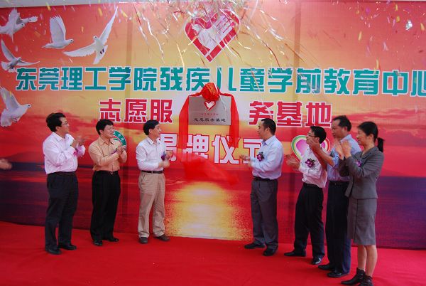 3月20日下午,东莞理工学院残疾儿童学前教育中心志愿服务基地揭牌仪式在东莞市残疾儿童学前教育中心举行。我校党委副书记王江水、团东莞市委副书记李纲、东莞市残疾人联合会副主席黄志良等相关领导和嘉宾亲临现场,参加活动的还有我校的志愿者代表以及残疾儿童学前教育中心的小朋友们。