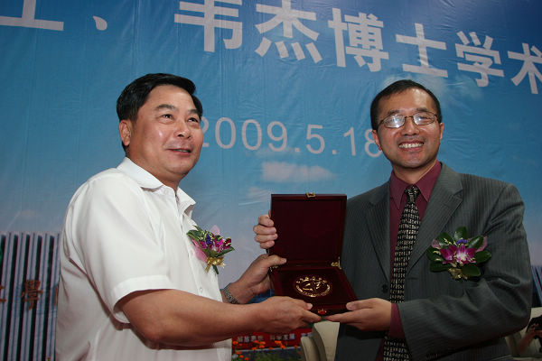 校党委书记周致纳向韦杰博士赠送纪念品