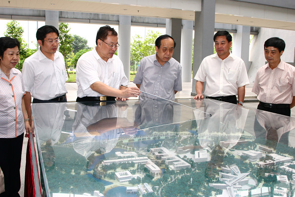 巡视组在学校沙盘前听取校领导汇报学校情况