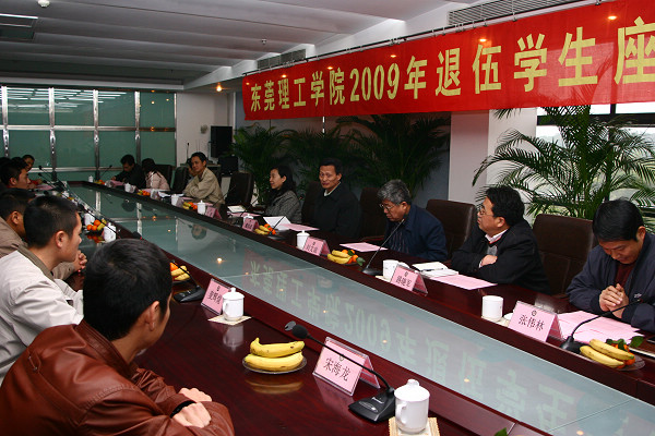 12月28日下午,我校2009年退伍学生座谈会在行政楼四楼会议室召开。参加会议的有我校副校长戴炳源,相关部门负责人,退伍学生及部分亲属。