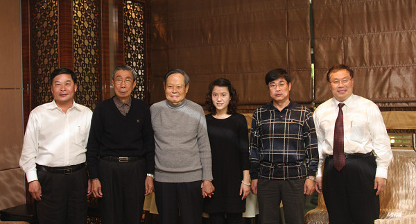 刘树基(右二)、郑锦滔(左二)及我校领导周致纳(左一)、杨晓西(右一)拜访杨振宁博士伉俪