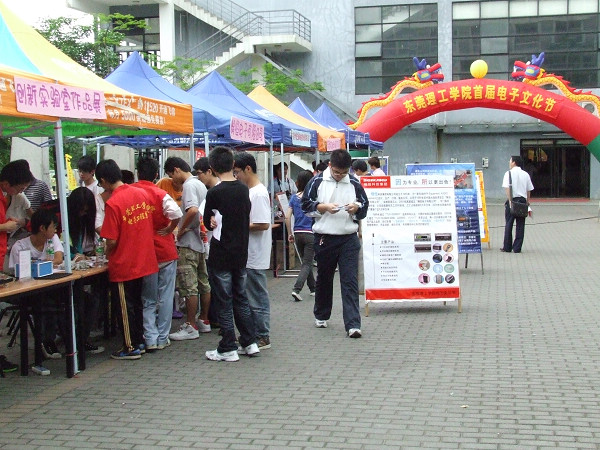 4月20日东莞理工学院首届电子文化节之电子产品图片及电子产品展在一期饭堂旁举行。本次活动以图片和实物展览为主。主要展示电子文化的发展史和生活中常见的电子知识以及剖析一些电子产品的工作原理,与我们生活的联系以及使用的注意事项等。