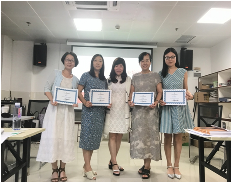 培训课上,黄晓红以两位著名画家在不同时期的绘画作品为例,向学员阐释图画与个人潜意识之间的关系,投射绘画法就是治疗师借助于简单模糊的指导语,引导案主发挥想象,将深层次的动机、情绪、愿望等显现于绘画作品上,治疗师通过对绘画作品的分析,走进案主的内心世界。黄博士请学员们分别以“带游泳池的房子”、“心目中的树”、“屋-树-人”和“一男一女”为主题绘画,示范了如何将叙事绘画疗法进行实际应用。培训课程最后内容还请学员代表对亲友的绘画作品进行尝试性解读,以检验两天的学习效果。课程结束后,黄博士向学员颁发了叙事绘画治疗初级课程培训证书。