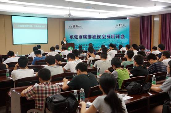 由东莞市科学技术协会主办,我校清洁生产中心和能源与化工系联合承办的2015年第17期创新论坛——东莞市碳排放权交易研讨会于5月27日在我校会议中心]举行。清洁生产中心相关负责人应邀出席本次会议。市科协、市科学馆、松山湖经发局等相关领导,相关企业代表、学生约80人参加了本次论坛。