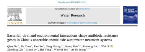 1月,我校生态环境工程技术研发中心吕斯濠教授团队的刘倩副研究员在环境领域国际知名期刊Water Research发表题为Bacterial, viral and environmental interactions shape antibiotic resistance genes in China’s anaerobic-anoxic-oxic wastewater treatment systems的研究论文。该成果以东莞理工学院为第一署名单位,刘倩副研究员为第一作者,硕士生陈洁为第二作者,中国科学院天津工业生物技术研究所黄聪研究员、哈尔滨工业大学(深圳)王爱杰教授为共同通讯作者。研究得到国家自然科学基金、天津市合成生物技术创新能力提升项目以及中国科学院环境生物技术重点实验室开放课题等项目的联合资助。