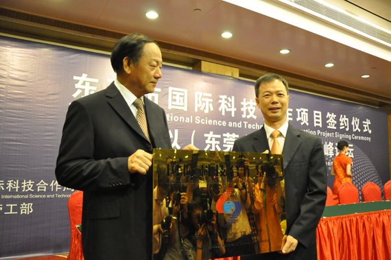 在2012年中国(东莞)国际科技合作周暨招才引智大会上,广东省科技厅向我校颁发了“广东省国际科技合作基地”牌匾。