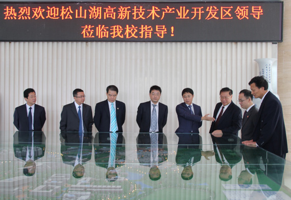 11月20日,松山湖管委会工委书记、常务副主任刘宁率领松山湖管委会领导班子来到我校会议中心,共商战略合作大计。