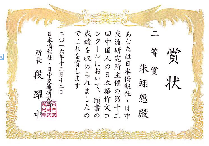 一年一度的全国中国人日语作文比赛是由日本侨报社、中日交流研究所联合举办,由日本外务省、文化厅、日本大使馆、中日文化交流协会等机构协办,主要参赛对象为全国各大高校学生。2005年以来已连续举办十二届,参赛人员达3.4万人,遍布中国30个省400余所大学,被称为中国最有影响的日语作文大赛。主办方在评出获奖者的同时,还将获奖作品集结成书每年在日本公开出版发行。我校日语专业学生自第九届开始参赛,之前先后出现一名入围未获奖、一名三等奖。本次参赛取得新的突破。