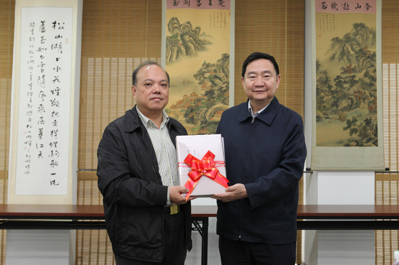邝明子、朱伍坤一行先后了解了学校图书馆馆藏情况,参观了满珍艺术中心(翰墨堂),并向城市文化研究中心赠送了15种地方文献。